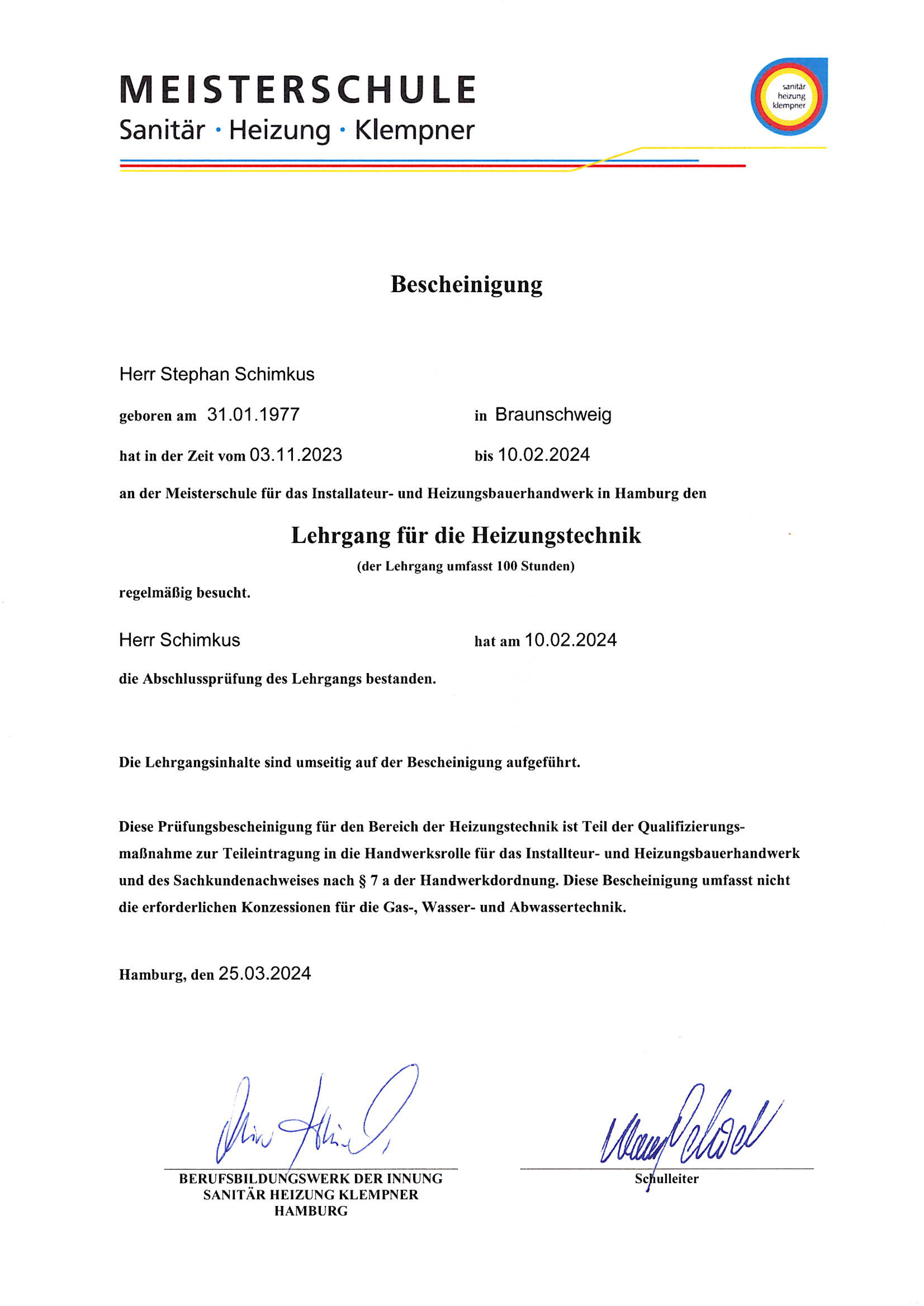 mein Name ist Stephan Schimkus, geboren am 31.01.1977, glücklich verheiratet und Vater einer Tochter.